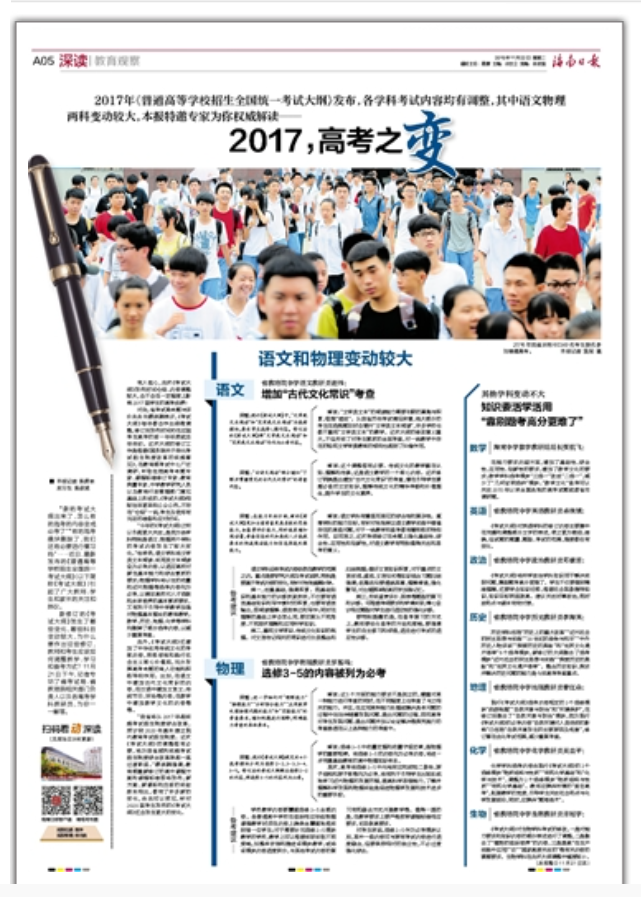 针对此事,2016年11月22日海南日报以《2017,高考之变》为标题,在005版整版对此次答记者问工作会议进行了全面的报道。