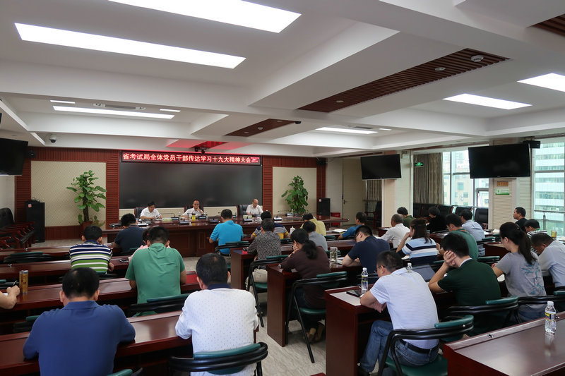 10月30日上午,我局召开专题会议,传达学习贯彻党的十九大精神、全省干部大会精神和省委教育工委、省教育厅党组学习十九大精神专题会议。会议传达了全省领导干部大会精神和省委教育工委、省教育厅党组学习十九大精神的会议精神,对省考试局学习宣传贯彻党的十九大精神作出全面部署。