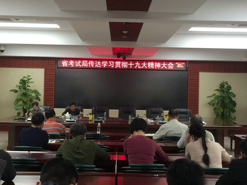 省考试局全体干部职工、《考试报》社有限公司中层领导参加了专题会。会议由省考试局党组成员、机关党委书记、副局长卢贵清同志主持。