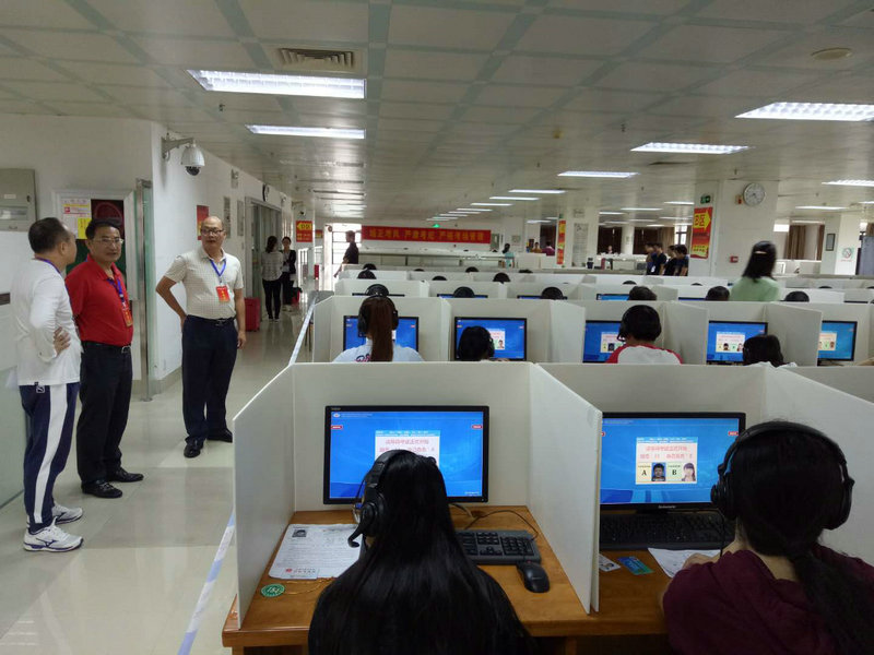 为加强考务管理,严肃考风考纪,确保考试安全平稳实施,我局提前制定了考试工作方案,成立了考试工作领导小组,统筹安排部署考试工作。考试前夕,由我局成招处牵头,委派专人对海大、海师两个考点的考场环境,包括服务器、网络、考试用计算机进行了多次调试和检测,对语音设备、保密室进行了严密的检查,确保考试机位和备用机位正常使用;邀请专门的技术人员对考点系统管理员、监考员、考务人员进行了培训,保证每个环节紧密协作、不出问题,并由考点安排学生进行模拟考试,两个考点严格按照我局的安排部署,落实安保、应急、保密、安检、后勤、医疗等考试服务机构的主体责任和工作人员的具体工作职责,全力保障考试实施工作,各职能小组相互配合,衔接有序,确保了我省该项考试的安全、平稳、顺利实施。