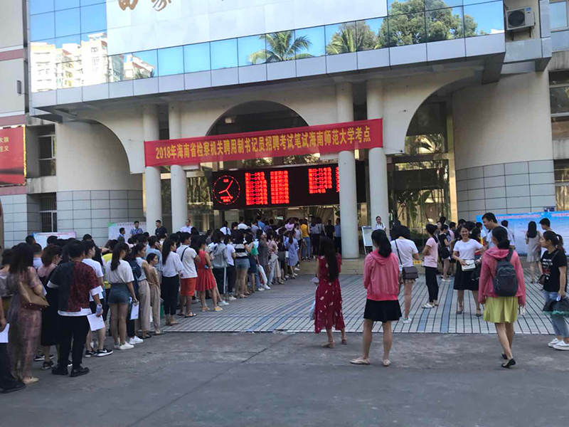 本次考试我省分别在海南大学海甸校区和海南师范大学龙昆南校区设置了考点。本次招录系面向全国公开招录,计划招录548人,11074人通过网上注册并报名,最终8423人通过资格审核符合考试资格。